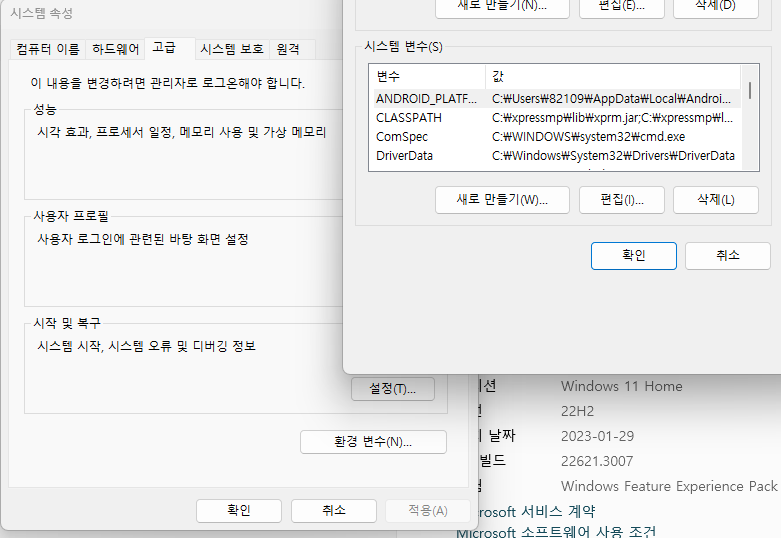 환경 변수를 편집하고 재시작하고 다시 시도했으나 여전히 문제는 지속되었다.