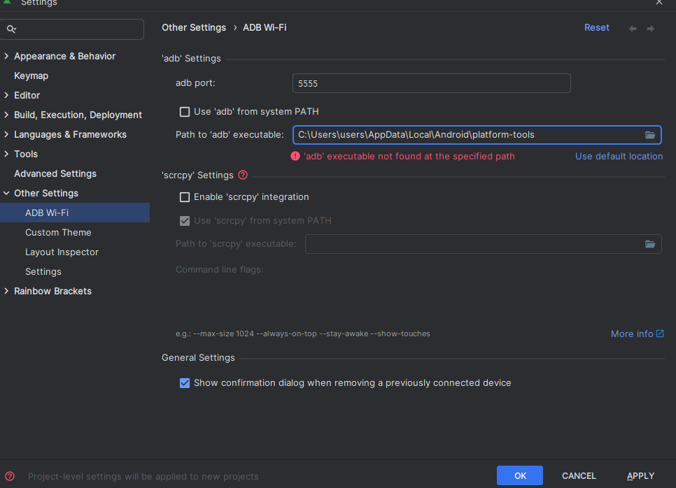 adb executable not found at the specified path라는 문구만 발생해서 열심히 구글링을 하였다.