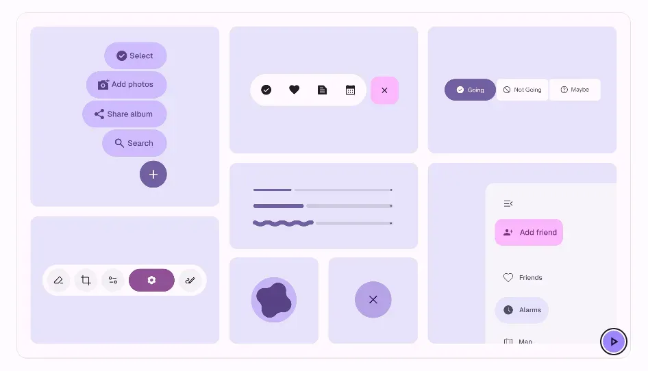 Material3 Expressive에서는 4가지 주요 스타일 요소를 통해 더 감성적이고 생동감 있는 사용자 경험을 구현한다. 각 요소의 특징을 간략하게 정리해보았다.