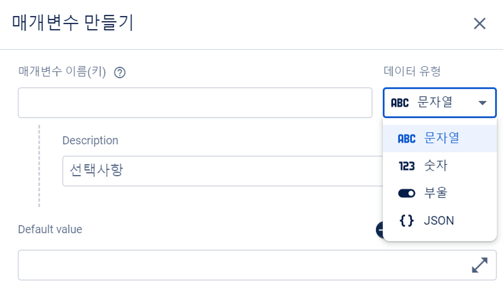 단순한 매개변수 값 변경 (레이아웃, Theme, String, JSON, Boolean)