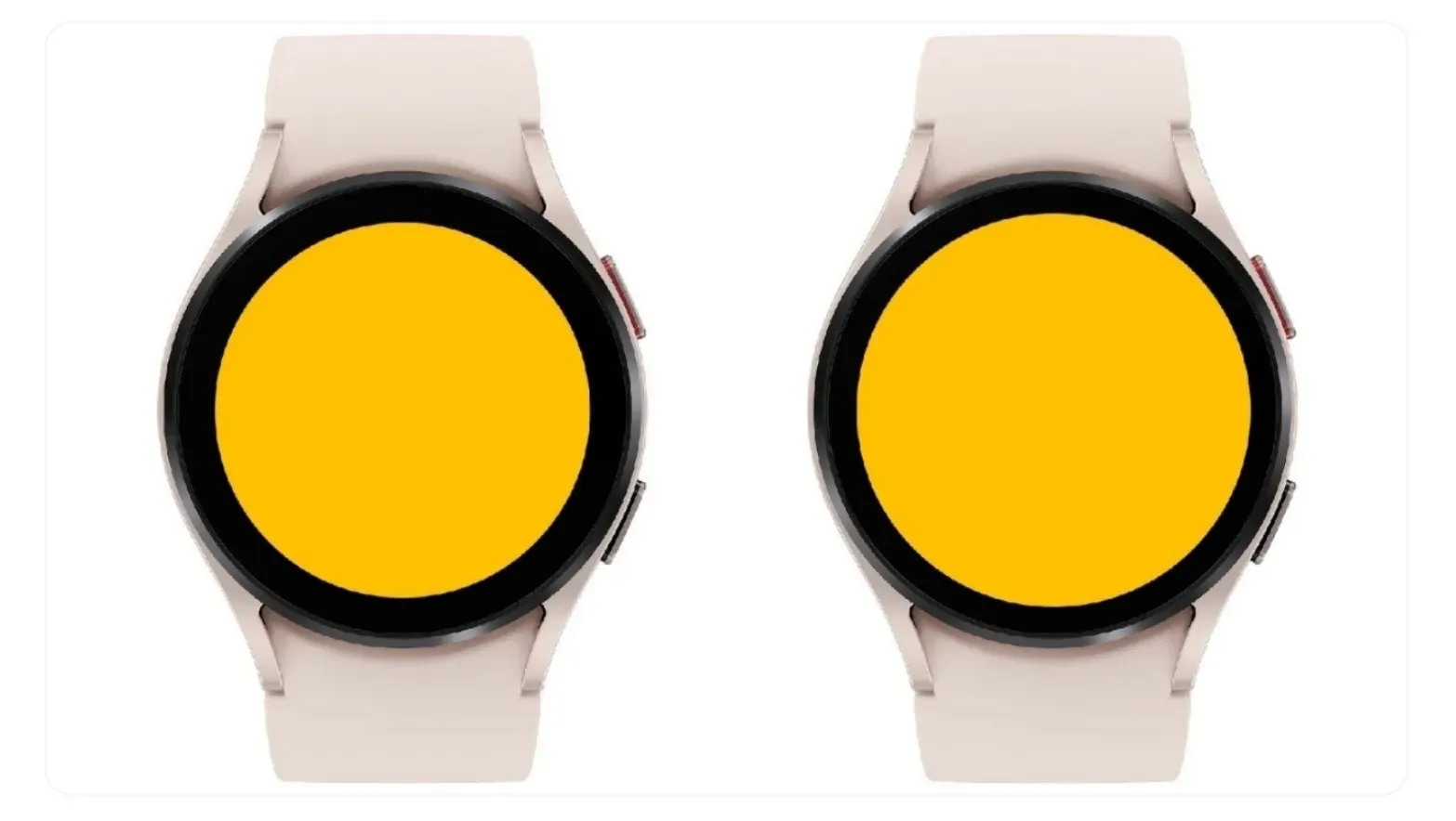 본격적인 기기대응을 시도하기 전에, 먼저 사용자 층을 파악해 보았다. Wear OS를 사용하는 워치는 40~47mm 케이스, 1.2~1.5인치 화면이 주류이며, 베젤은 2~4mm 수준이 일반적이라고 한다. 국내에서는 삼성의 갤럭시 워치의 사용률의 압도적으로 높은데, 44mm 모델이 가장 평균적인 것 같다. 베젤 영역은 평균적으로 8% 정도 영역을 차지한다.