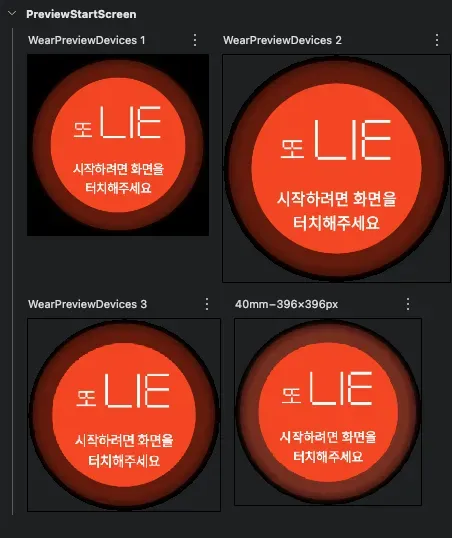 발표 준비에 대한 시간이 충분하지 않아서, 필자가 가지고 있는 갤럭시 워치4 모델에서만 잘 보이도록 임시로 만들어 시연을 준비했다. 따라서 배포 전 기기대응을 할 필요가 있었고, 가장 영향을 많이 받는 시작 화면에 대해서 기기대응을 진행한 과정을 설명해보려고 한다.